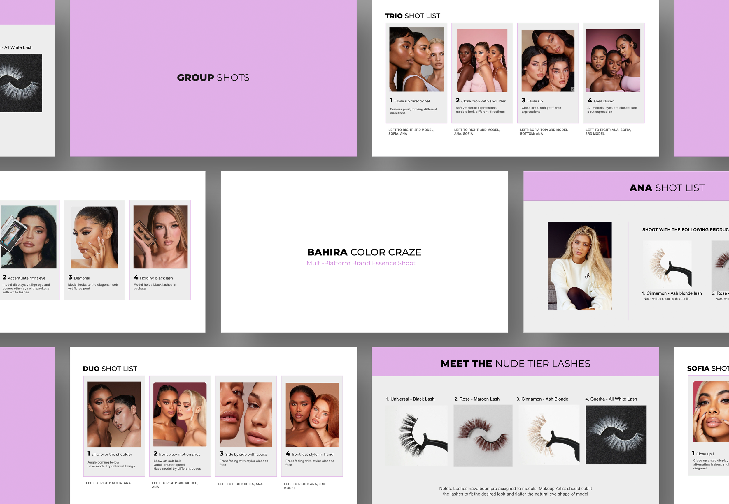Before the shoot, my team and I focused on thoughtful casting and art direction to define the look and energy of the campaign. Inspired by bold, “baddie” beauty brands like Skims, we aimed for a fierce yet inclusive feel. Since we were highlighting neutral lashes, we built a diverse cast—including a model with vitiligo—to reinforce that Color Craze offers a lash for everyone. We developed a detailed shot list with poses for each model and I chose clean, neutral styling to keep the focus exactly where it belonged: on the lashes.