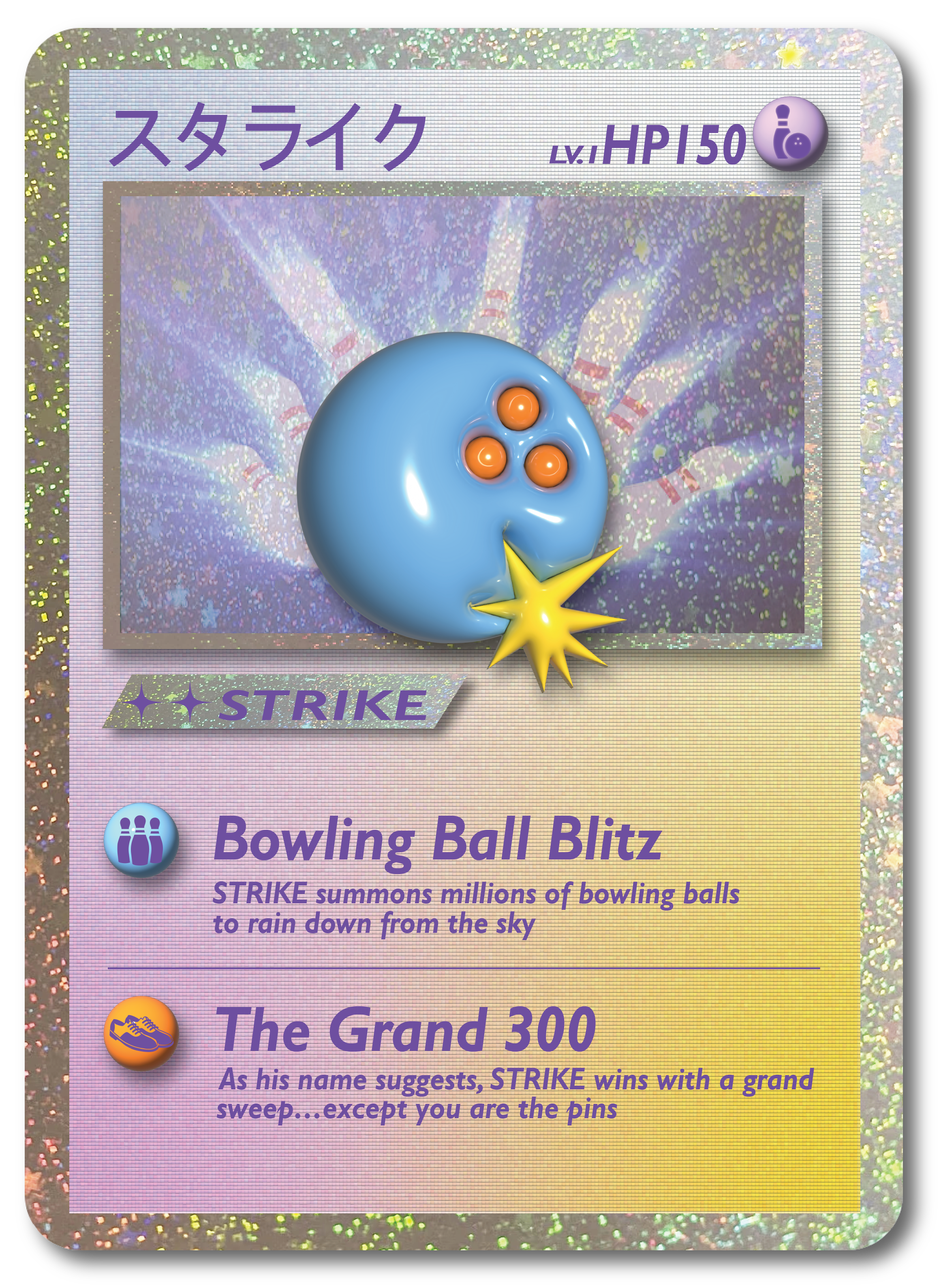 I had the idea to create Pokemon-esque cards for each of the BOBLAND staff characters. Here to the right are 2 of them, created by myself and the BOBLAND design staff. We have IRIS, our rainbow resident head photographer, and STRIKE, the BOBLAND bowling ball web developer. I came up with all the “special moves” seen on the cards.