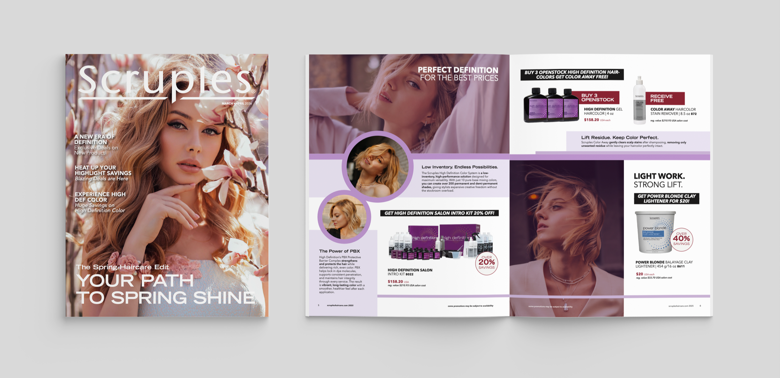 Throughout every edition, the goal was to uphold Scruples’ sleek, professional salon image—balancing clean layouts, consistent branding, and thoughtful product storytelling to keep the catalog both visually polished and on-trend.