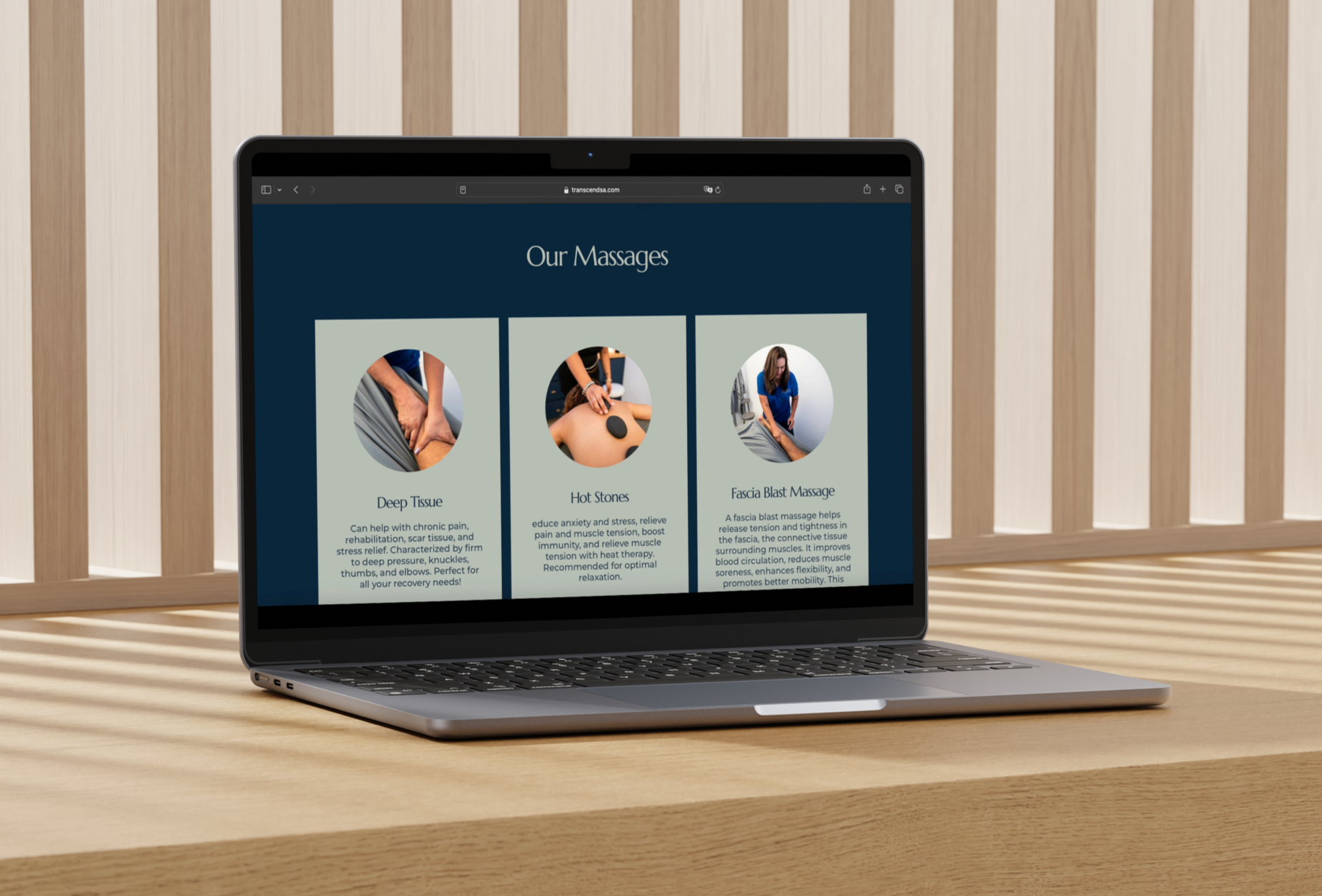 Alongside the brand refresh, we designed and developed a new website for Transcend Health Spa that fully embodied their expanded visual identity while prioritizing a seamless user experience. The site clearly showcases services, booking options, and spa information through a streamlined structure that replaced an overly complex page system. We also optimized SEO positioning to improve discoverability, ensuring the site performs as beautifully as it looks.